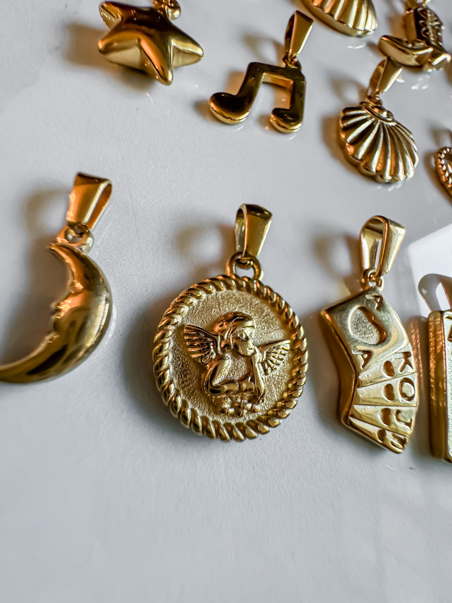 Customize any necklace or swimsuit with our amazing variety of 18k gold-plated pendants (yes you can get them wet!)