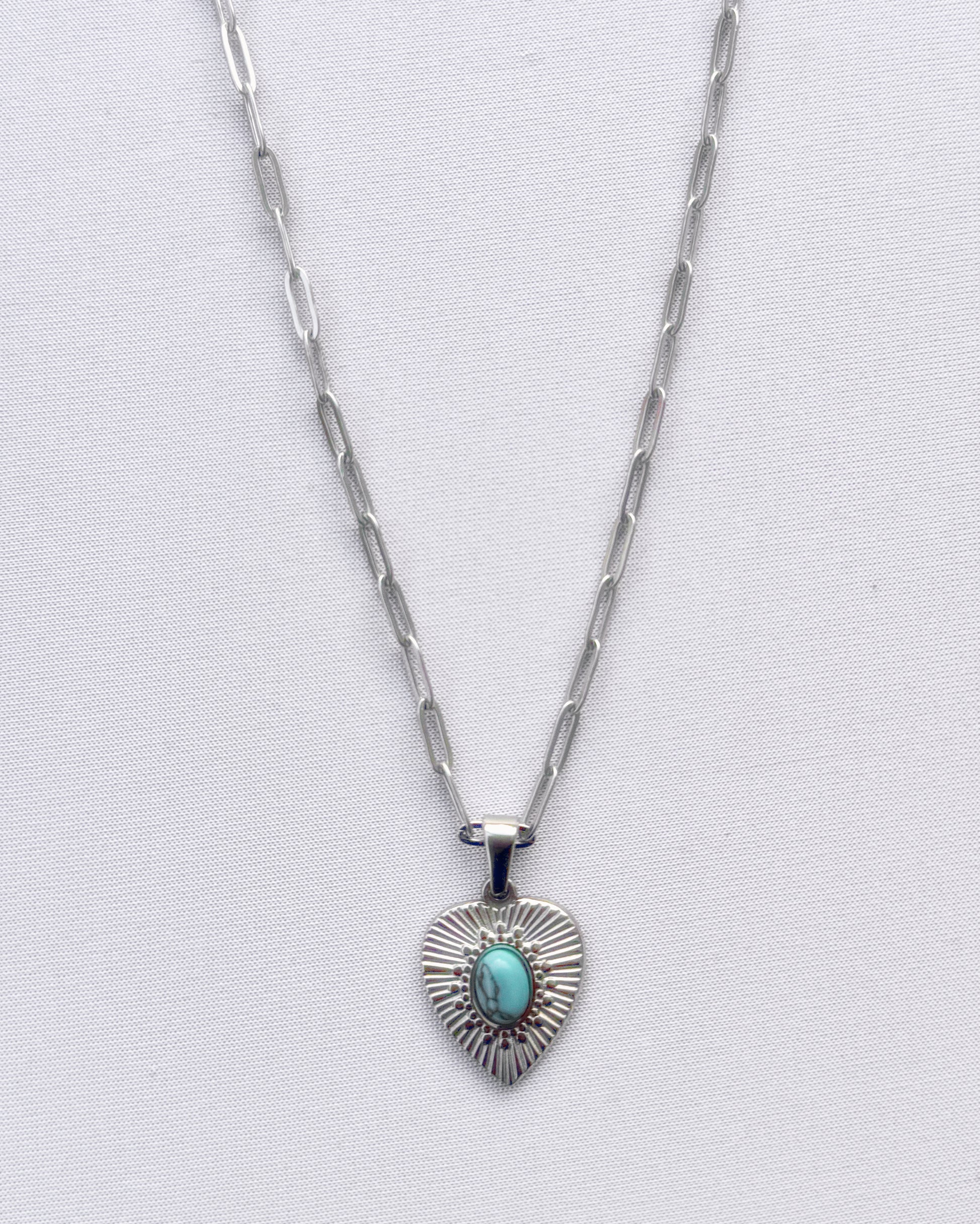 Stainless Steel Chain - 24” length paired with our turquoise heart charm. Tarnish-Free & Waterproof