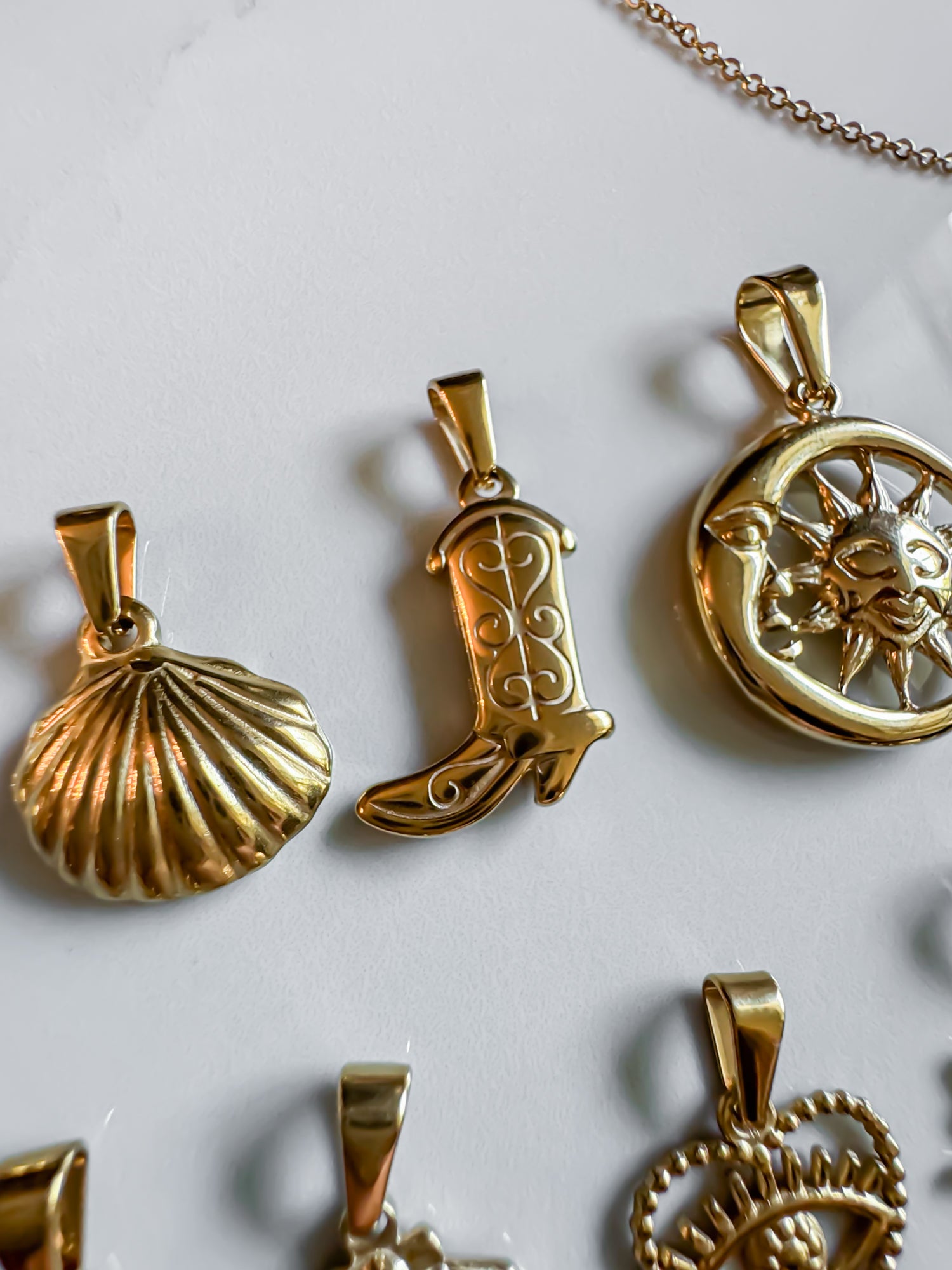 Customize any necklace or swimsuit with our amazing variety of 18k gold-plated pendants (yes you can get them wet!)