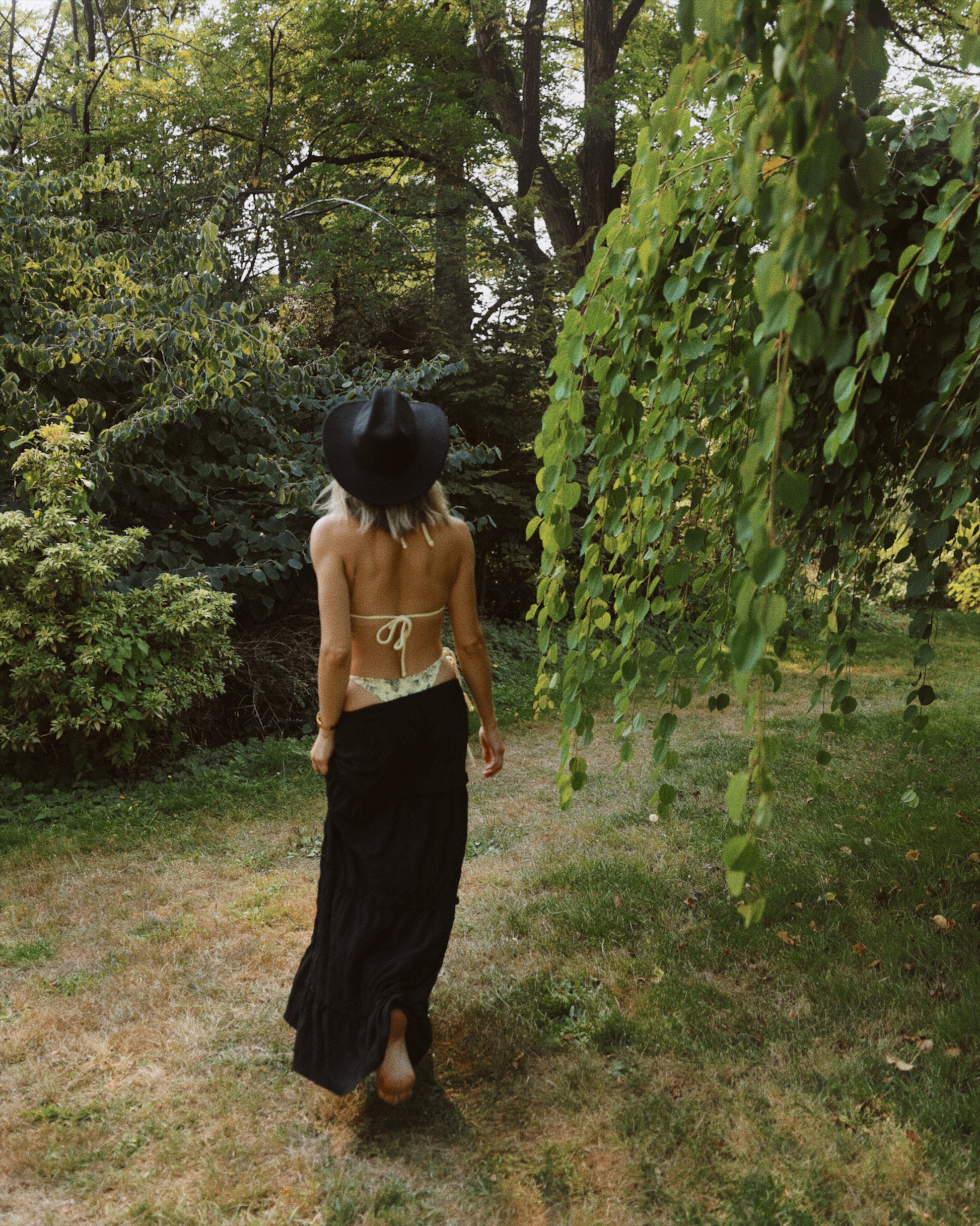 The sunny reversible bikini bottom has the perfect shade of baby yellow on one side paired with a bold yet delicate custom Livmore print on the other.